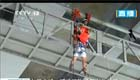 工人通過繩索從25米大橋脫困現場