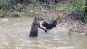 袋鼠想把狗給淹死