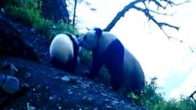 野生大熊貓母子過山岡“溫馨”一幕