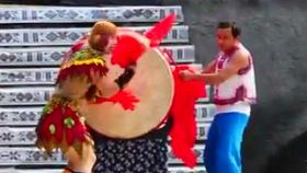 苗族“猴兒鼓”表演逗樂觀眾