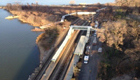 航拍美國紐約一客運列車脫軌 車廂墜河