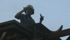 實拍:男子高架上手舞足蹈 耍瘋搶走消防員帽子