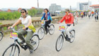 游客騎車赴朝鮮旅游
