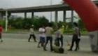 監(jiān)拍:油罐車撞倒加油機(jī) 汽油灑遍地