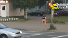拍客:女子穿透視裝當街走貓步 司機撞燈柱