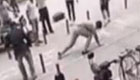 實拍小伙當街暴打老人 反遭抱腳摔落荒而逃