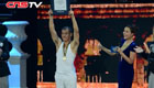 美女主持人直播球賽 被足球砸中腦袋