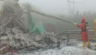 運危化品罐車遭追尾 消防穿防化服噴泡沫阻泄漏