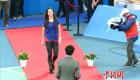美女主持人直播球賽 被足球砸中腦袋