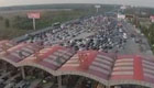 航拍大廣高速迎返程高峰 嚴重擁堵宛如停車場
