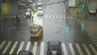 女孩大雨中為交警打傘