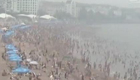 青島海濱浴場如同"下餃子"