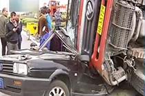 又是闖紅燈惹的禍 貨車“騎”上小轎車