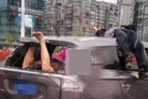摩托車追尾轎車:1人撞進后備箱 1人飛上車頂