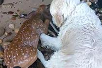 金毛犬救落水小鹿