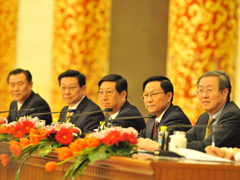 - 主持人李連寧:2010-3-6 10:04出席今天記者會并回答大家提問的嘉賓有:國家發(fā)展改革委員會張平主任、財政部謝旭人部長、商務部陳德銘部長和中國人民銀行周小川行長。他們將就加強和改善宏觀經(jīng)濟調(diào)控來回答大家的提問。