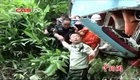 【字幕】在離都江堰中興鎮三溪村泥石流現場兩公里的地方,由于交通管制外面尋找親人的村民無法進入,來自三溪村6組的村民張院與家人已近失去聯系一天了,尋親急切連鞋都被洪水沖走,打上了光腳。