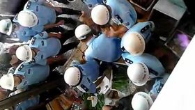 【解說(shuō)】當(dāng)天,學(xué)校食堂的大廚親自為他們準(zhǔn)備了兩個(gè)水果蛋糕。在生日會(huì)現(xiàn)場(chǎng),他們倆親自將蠟燭點(diǎn)燃,許愿完以后將蠟燭吹滅。
