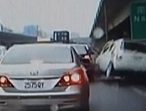 臺(tái)北市的一段繁忙公路上,一輛白色轎車為了躲避警察高速行駛在路間,卻卡在了公路上。