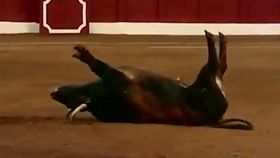 蠻牛空翻倒地四腳朝天“裝死”