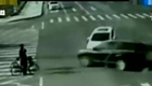 監拍:吉普車頂著越野車瘋狂前行 撞飛路人