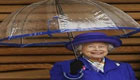 英國(guó)女王愛打扮,衣帽胸花雨傘要配套。
