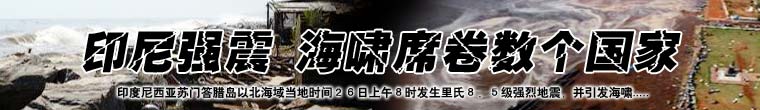 印度尼西亞蘇門答臘島以北海域當地時間26日上午8時發生里氏8.5級強烈地震,并引發海嘯,東南亞和南亞數個國家受波及,造成重大人員傷亡。
