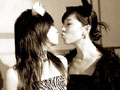 兩"超女"挑戰(zhàn)性感底線 穿爆乳裝玩同性親吻(圖)(9月21日08:47)