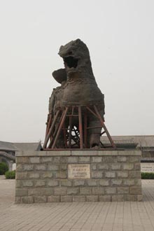 巧奪天工"鎮海吼" 網絡媒體參觀滄州鐵獅子(圖)(4月17日 02:11)