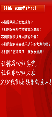 百度發布"2007年搜索風云榜" 包含23張特色榜單(12月11日11:07)
