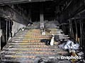 工作人員正在清理拉薩市朵森格路被焚毀的店鋪