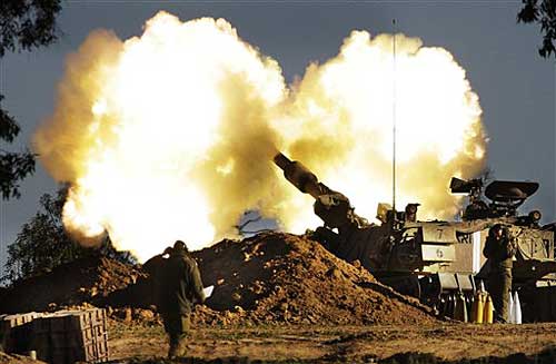 第八日 以色列軍隊3日下午開始對加沙地帶發(fā)動炮擊。這是2008年12月27日以軍開始空襲加沙以來首次進行炮擊。哈馬斯高級指揮官阿爾•賈邁勒在襲擊中喪生,他是第三位在以軍襲擊中喪命的哈馬斯高級指揮官。第二位是哈馬斯下屬武裝派別高級軍事指揮官阿布•扎卡里亞•賈邁勒,他于2日晚在空襲中受傷,3日早因傷勢嚴重死亡。當晚,以色列發(fā)動地面進攻,戰(zhàn)爭全面升級。死亡人數(shù)上升至450人,受傷者達2300人。【詳細】
