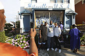 美國(guó)底特律歌迷在邁克爾·杰克遜宣傳窗外合影