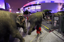 杰克遜公眾追思會(huì):馬戲團(tuán)大象抵達(dá)現(xiàn)場(chǎng)