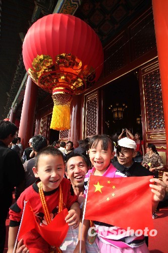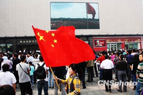 組圖:重慶市民街頭歡慶祖國(guó)60華誕