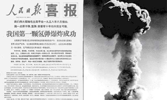 在氫彈爆炸成功的同時,中國政府重申:“中國進行必要而有限制的核試驗,發展核武器,完全是為了防御,其最終目的就是為了消滅核武器”。“在任何時候,任何情況下,中國都不會首先使用核武器。”