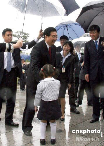 ·圖:胡錦濤主席在雨中接受日本小姑娘的獻花(5月10日 16:31)