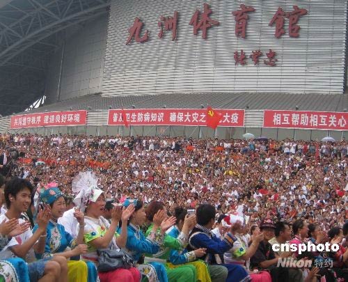 ·圖:綿陽民眾九洲體育館內觀看慰問演出(6月29日 15:22)