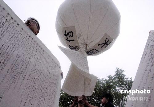 ·北京藝術家為地震遇難者放飛"天國書信"(6月29日 20:48)