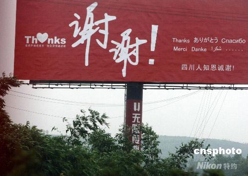·震區宣傳牌多國語言感謝中國和國際社會(6月22日 19:55)