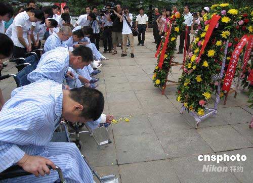 ·圖:志愿者祭奠北川中學遇難學生(6月12日 20:09)