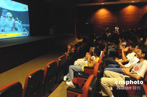 ·圖:廈門(mén)大學(xué)學(xué)生關(guān)注神七航天員翟志剛出艙(9月27日 20:59)