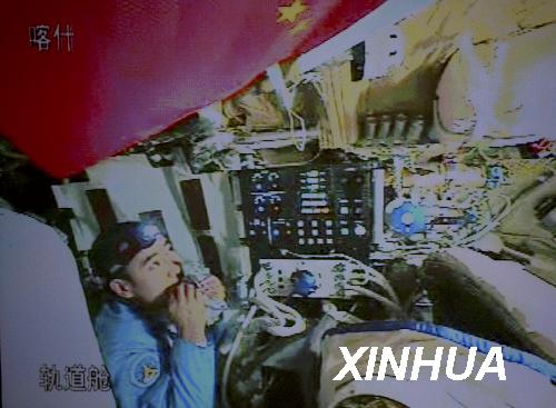 ·圖:五星紅旗在太空飄揚(yáng)(9月27日 16:55)