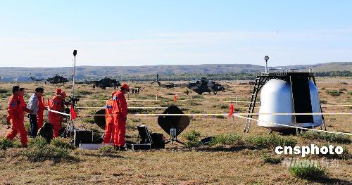 ·圖:"神七"返回艙搜救任務(wù)人員進(jìn)行最后演練(9月25日 15:44)