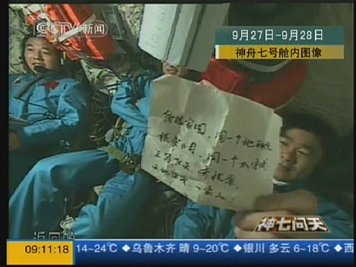 ·圖:中國(guó)人實(shí)現(xiàn)首次太空行走(9月27日 17:56)