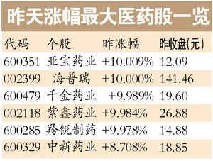近日,國家工信部、衛(wèi)生部、國家食品藥品監(jiān)督管理局聯(lián)合發(fā)布《關于加快醫(yī)藥行業(yè)結構調整的指導意見》,支持我國醫(yī)藥產業(yè)發(fā)展。并且對于對大型企業(yè)跨省(區(qū)、市)重組后的改擴項目優(yōu)先予以核準,在股票發(fā)行、企業(yè)債券、中期票據以及銀行貸款方面給予支持,從而提高整個行業(yè)的產業(yè)集中度,培養(yǎng)大型醫(yī)藥集團,提高醫(yī)藥產業(yè)集中度。受此消息影響,昨天醫(yī)藥板塊表現十分搶眼。