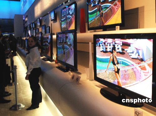 一月上旬,當今超薄型高清晰度彩色電視機在美國拉斯維加斯世界最大的消費電子產品展上傳達信息:它們將是裝飾墻壁的電子生活藝術品。中新社發 賈國榮 攝