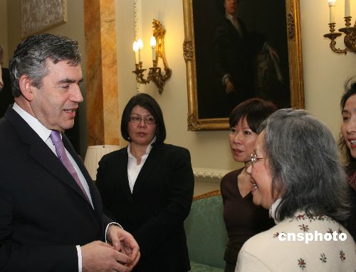 當?shù)貢r間1月14日下午,即將訪華的英國首相布朗在唐寧街十號會見旅英華人華僑、中資機構(gòu)負責人、留學生等華人杰出代表。中新社發(fā) 李鵬 攝