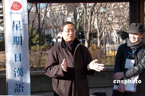1月27日下午,在日本訪問的蔡建國教授來到東京星期日漢語角,和日本朋友進(jìn)行交流。蔡建國教授介紹了中國改革開放30年取得的成果,就中日文化交流、北京奧運(yùn)會等話題進(jìn)行演講。蔡建國博士原是日本新瀉國際情報(bào)大學(xué)教授、現(xiàn)任上海同濟(jì)大學(xué)亞太研究中心主任兼國際文化交流學(xué)院院長、致公黨中央常委,日前當(dāng)選第十一屆全國政協(xié)委員。中新社發(fā) 段躍中 攝