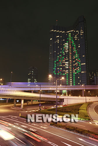 11月6日晚,日本首都東京一家酒店外墻用燈光組成一個高約100米的大型“圣誕樹”,以迎接即將到來的“圣誕節(jié)”。